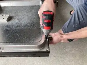 Поддерживайте наружную панель дверцы одной рукой при выкручивании последних двух винтов в верхней части дверцы.