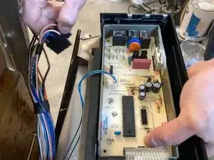 Держите панель управления одной рукой при отсоединении электрических соединений от старой платы.