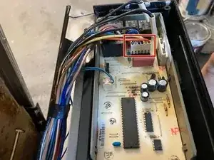 Подключите белый прямоугольный разъём с шестью проводами к новой электронной плате управления.