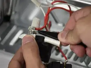 Аккуратно отогните термозащиту от разъема регулятора нагрева тоста большим пальцем.