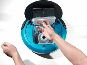 Поднимите ручку, чтобы открыть контейнер для пыли.