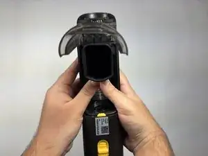Сожмите вкладки у основания ручки, чтобы освободить аккумулятор от пылесоса.