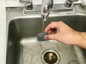 Возьмите пропитанный водой фильтр и промойте его под проточной водой в течение 60 секунд.