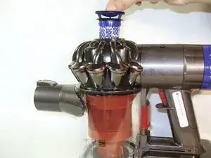 Найдите синюю ручку с надписью "Фильтр" в центре циклона.