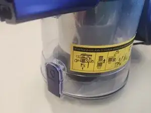 Откройте отсек для пыли, нажимая фиолетовую защёлку.