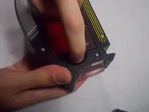 Теперь поднимите красную пластиковую крышку, чтобы начать извлечение фильтра.