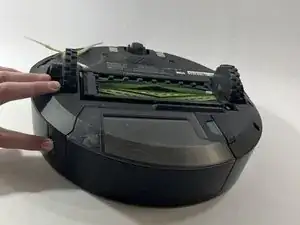 Переверните Roomba вверх дном, чтобы переднее колесо (колесо-катер) смотрело от вас.