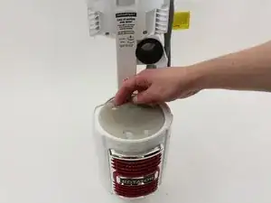 При нажатии на красную кнопку разблокировки, потяните контейнер для пыли от пылесоса, чтобы снять его.