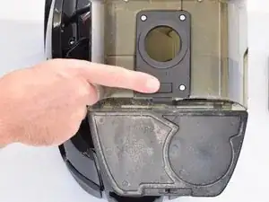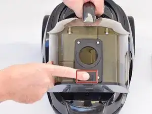Нажмите кнопку под круглым отверстием в пылесборнике, чтобы открыть его нижнюю часть.