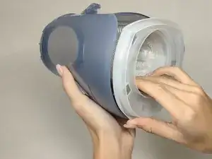 Держите синюю крышку фильтра крепко и потяните фильтр на себя.