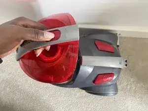 Сдвиньте переключатель вниз на ручке контейнера для пыли, чтобы освободить его от пылесоса.