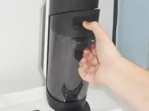Поставьте руку на кнопку над контейнером для пыли пылесоса.