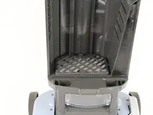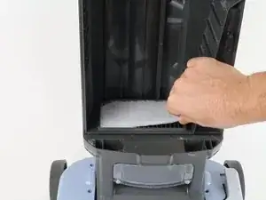 Снимите рамку пылесоса, зажав вкладку вниз и потянув рамку от корпуса пылесоса.