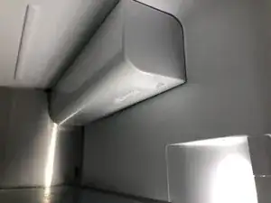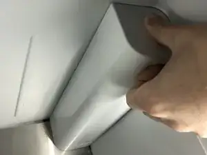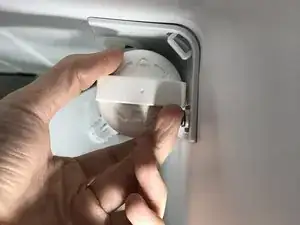 Толкните панель в сторону задней стенки холодильника, чтобы зафиксировать крышку фильтра воды.