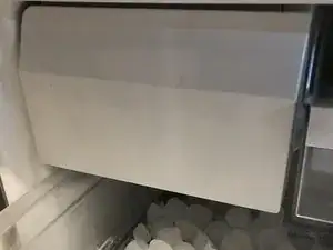 Закройте панель, затем выдвижной ящик морозильной камеры.