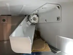 Откройте выдвижной ящик морозильной камеры и найдите панель управления льдогенератором.
