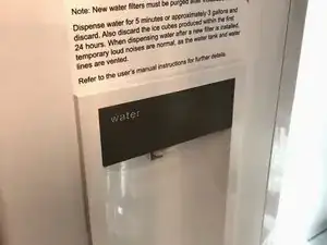 Пропустите через диспенсер примерно 3 галлона (примерно 11,4 литра). Это удалит воздух из водопроводных линий и подготовит новый фильтр.