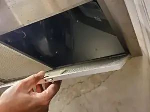 В следующих шагах будет описан процесс замены фильтра вытяжки Broan-Nutone (Broan EW4830SS). Процесс состоит из небольшого количества шагов и должен занять всего несколько минут. Единственное, что потребуется для этой работы, — это бумажное полотенце, которое не обязательно, но поможет в процессе очистки. Во время выполнения замены убедитесь, что плита выключена, так как это представляет опасность и может привести к травмам, если оставить ее включенной.