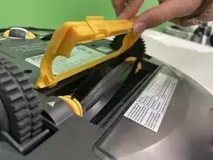 Снимите четыре болта Torx T6 длиной 9,5 мм с жёлтой рамки щётки.