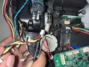 Используйте лопатку или пальцы, чтобы отсоединить все кабели от разъёмов на плате, подключённых к колесам.