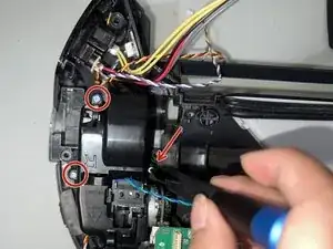 С помощью отвёртки Phillips #1 удалите три винта длиной 12 мм, которые удерживают правое колесо.
