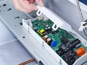 Поднимите крышку, чтобы освободить язычки с противоположной стороны корпуса главной платы.