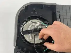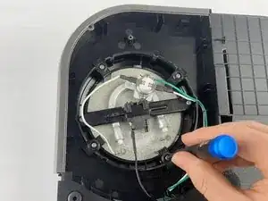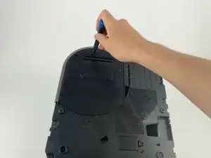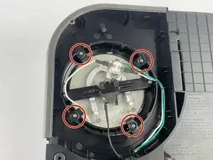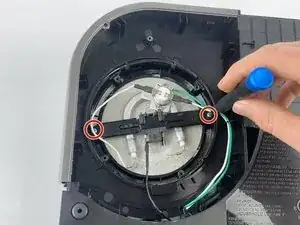 В верхнем левом углу снимите единственный винт Phillips #1, который удерживает пластиковую панель.