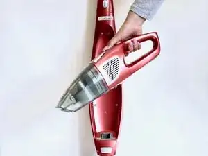С помощью рук осторожно оттяните ручной пылесос от стикового пылесоса, чтобы отсоединить его.