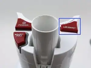 Нажмите красную кнопку Lift Away вниз и поднимите ручку пылесоса, чтобы отсоединить основание.