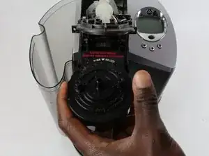 Снимите пластиковое кольцо вокруг держателя пакетов K-Cup