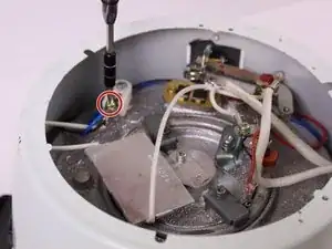 Открутите крестовой винт длиной 7 мм, соединяющий два белых провода и один красный провод с переключателем "подогрева" нагревателя.