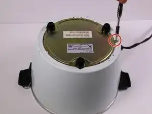 Открутите крестовой винт длиной 10 мм, соединяющий белый, синий и чёрный провода с белой пластиковой деталью в углу устройства.