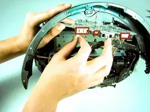 Отключите три кабеля, соединяющие материнскую плату с передней частью Roomba.