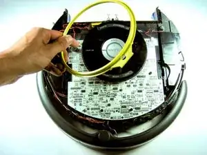 Снимите круглую резиновую ленту датчика падения, потянув её вверх от переднего края Roomba.
