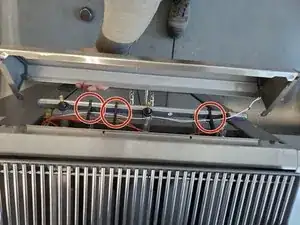 Снимите два винта 19 мм под панелью ручек управления с помощью отвертки Phillips #3.