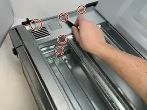 Снимите 3 винта Phillips #1 вдоль верхнего края внутренней части с помощью отвертки. Нижние 2 винта снимать не нужно.