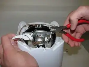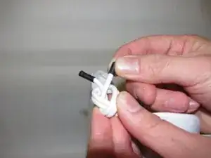 С помощью кусачек отрежьте оба провода кабеля питания в термоусадочной зоне, где провода разделяются.