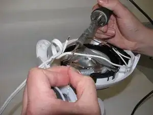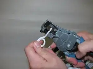 С помощью отвертки Phillips #1 открутите два винта Phillips размером 13 мм, которые удерживают жгут проводов.