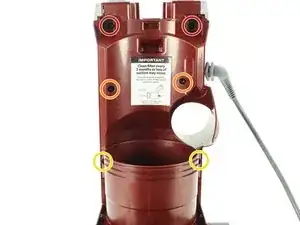 Используйте отвертку T20, чтобы отвинтить четыре винта 14 мм с нижней части пылесоса, поворачивая против часовой стрелки.