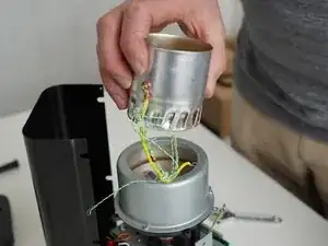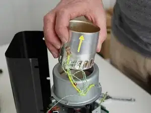 Установите обжарочную машину в вертикальное положение и отведите заднюю панель от шасси, чтобы открыть доступ к оставшимся компонентам.