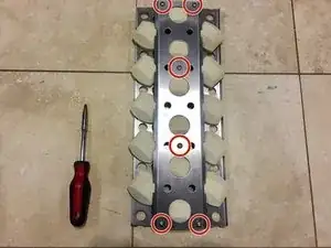 Найдите шесть винтов, расположенных на верхней части корпуса керамических брикетов, и отвинтите их с помощью вашей отвертки с крестовым наконечником.