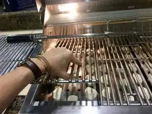Убедитесь, что газовый гриль выключен, а пропан отключен перед снятием решетки.