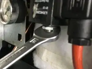 Сначала удалите гайку внизу, используя ключ на 14 миллиметров.
