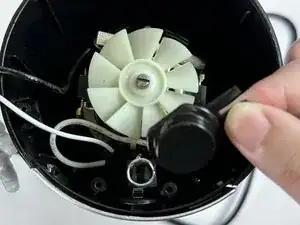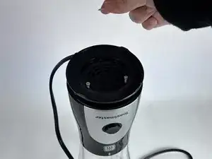 Осмотрев внутреннюю часть блендера, найдите два серебристых винта рядом с кнопкой и выкрутите их отверткой.