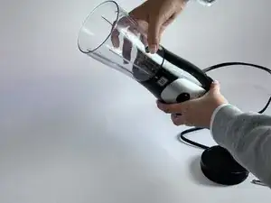 Снимите крышку с блендера и переверните прибор вниз дном.