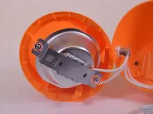 Уберите два винта Phillips #2 размером 1,3 мм.