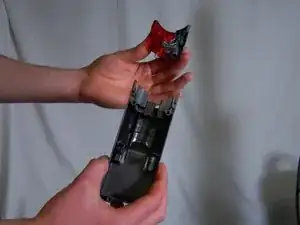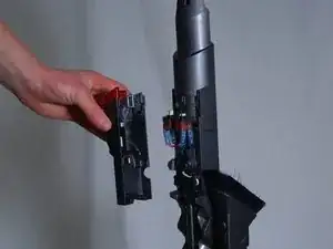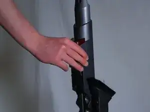 Потяните за пластиковый корпус под кнопками питания и щеточного узла, чтобы отделить его от Dyson.