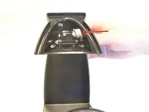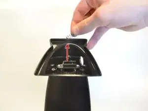 Немного поднимите кнопку, когда она будет внутри подставки, чтобы получить доступ к пружине под ней.