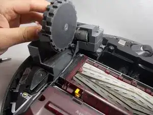 Снимите панель батареи, затем открутите два винта за колесами и отделите нижнюю панель от остальной части устройства.