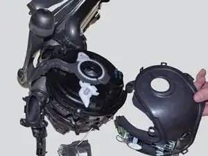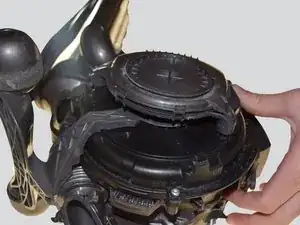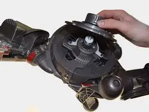 Вставьте пару маленьких узкогубцев в маленький серый центр боковой половины корпуса. Поверните против часовой стрелки и вытащите маленькую центральную деталь.